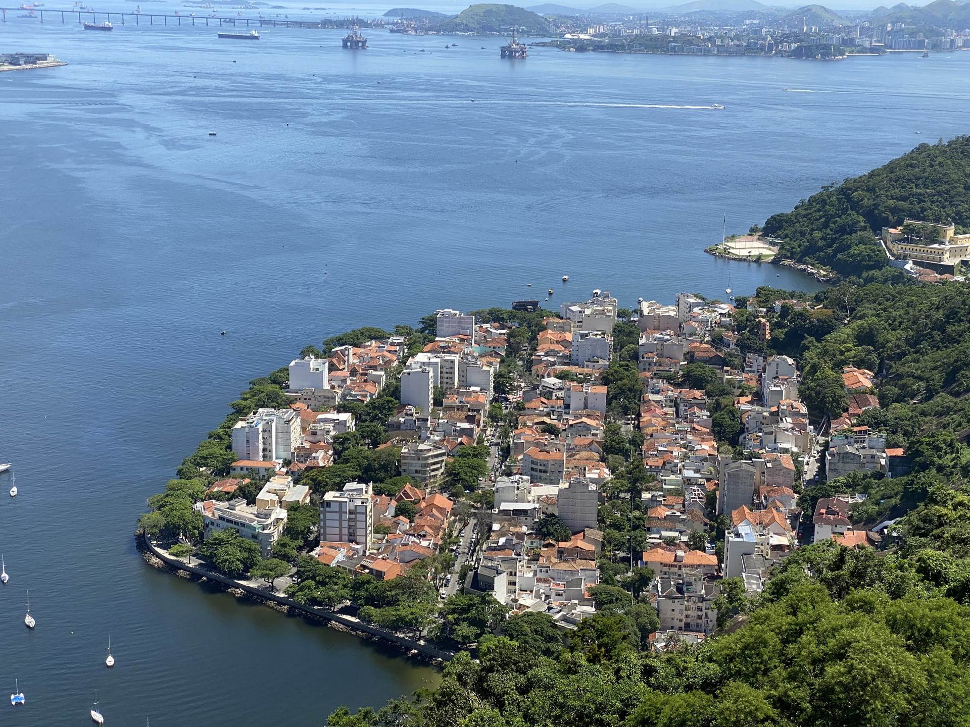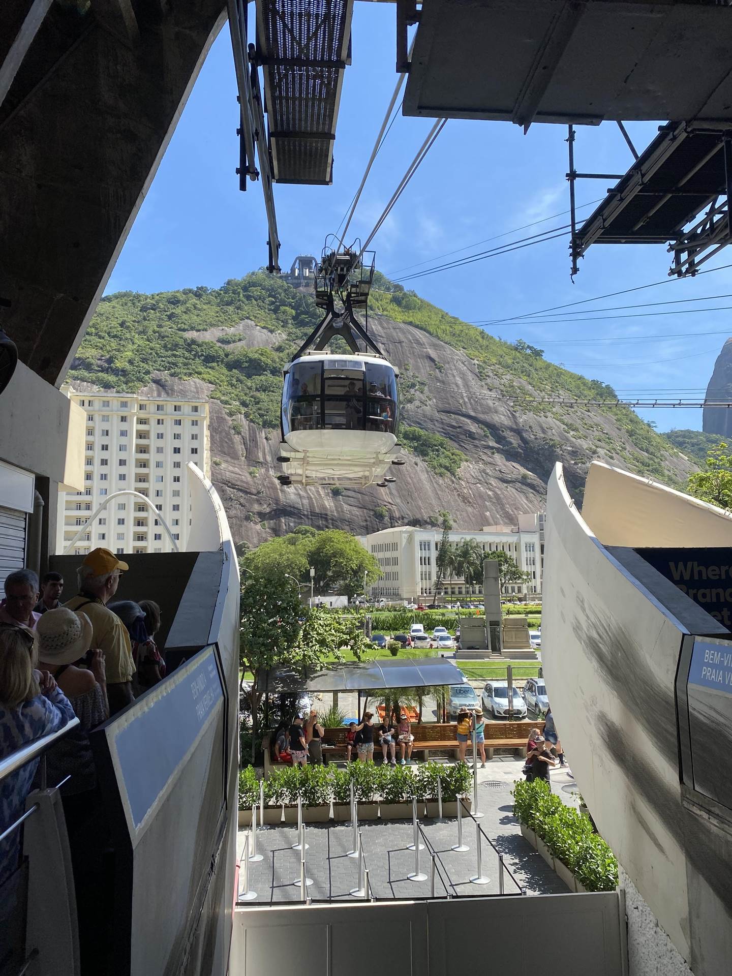 Nachdem wir die erste Etappe hinter uns gebracht hatten, folgten wir unserem Guide weiter zum zweiten Einstieg der Seilbahn um auch gleich noch bis ganz nach oben weiter zu fahren. Hierbei führte der Weg an einigen tollen Fotomöglichkeiten mit einem phantastischen Blick über die Bucht von Rio vorbei.