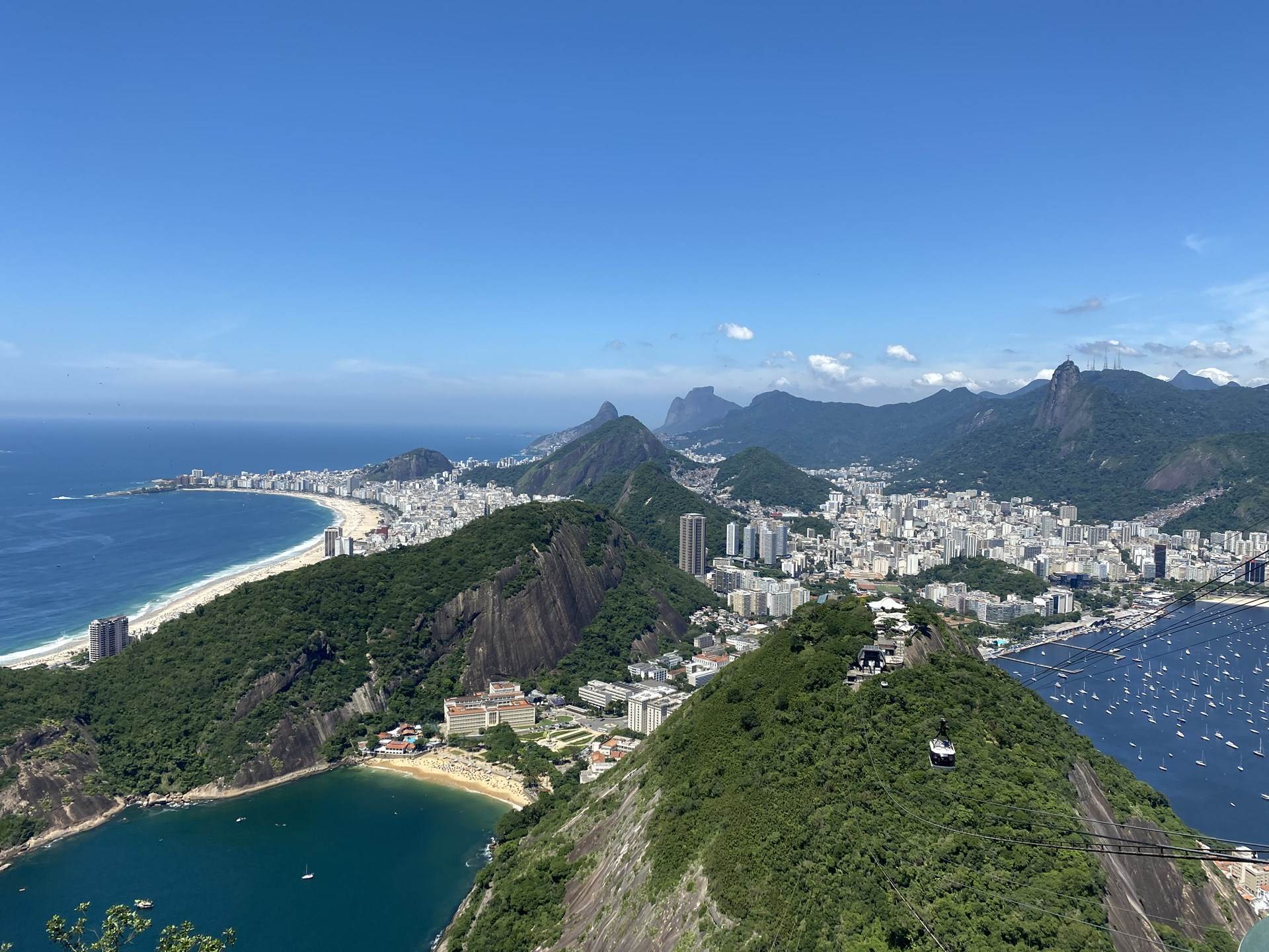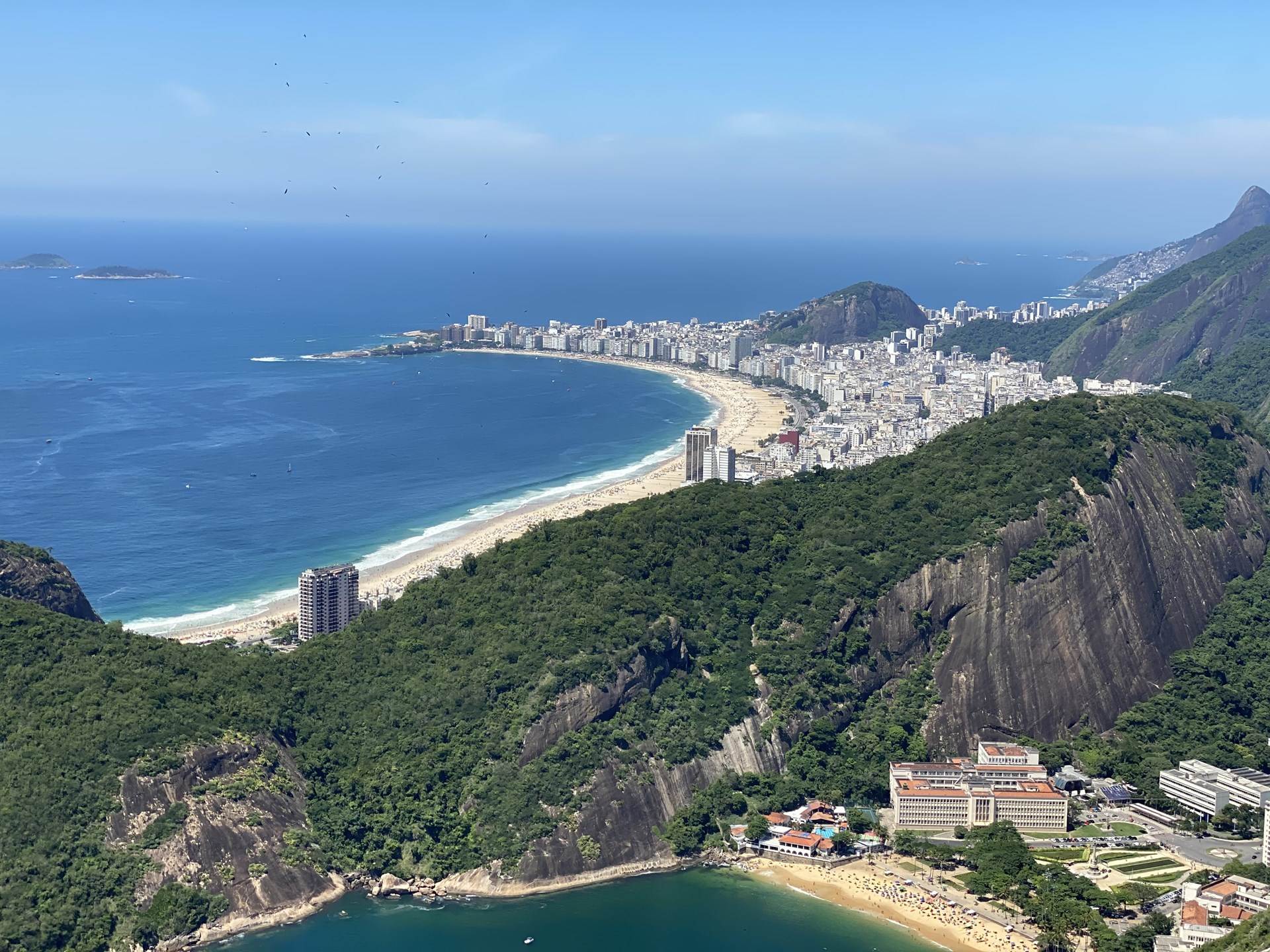 Der Ausblick vom Gipfel des Zuckerhuts ist sehr beeindruckend. So sieht man von hier aus auch z. B. den sichelförmigen Strand, die Copacabana, an der unser Hotel lag.