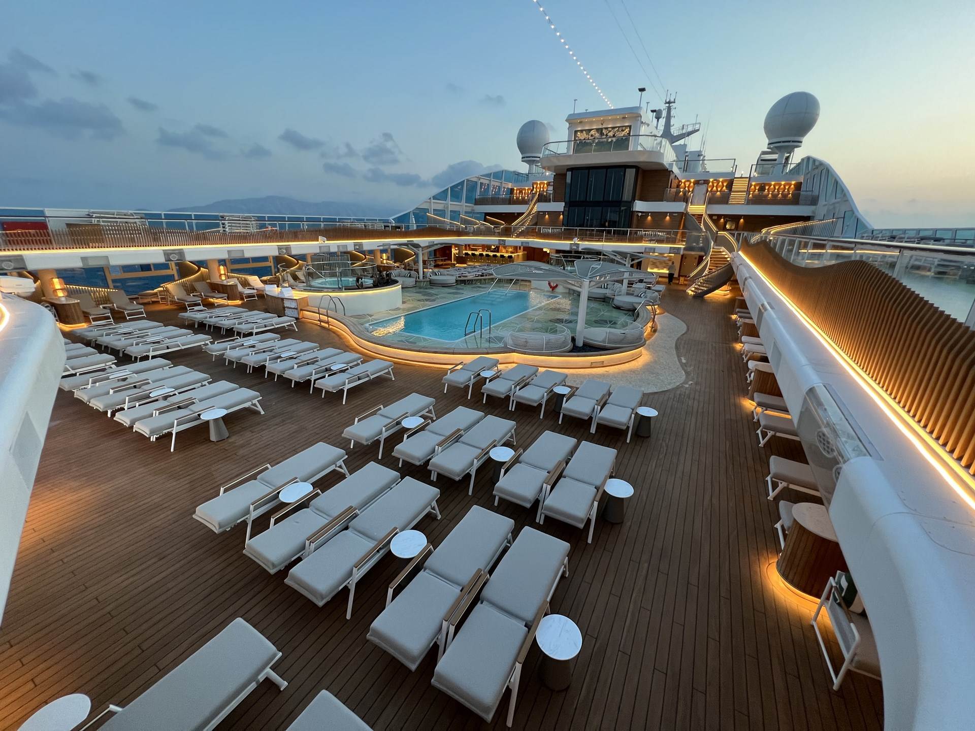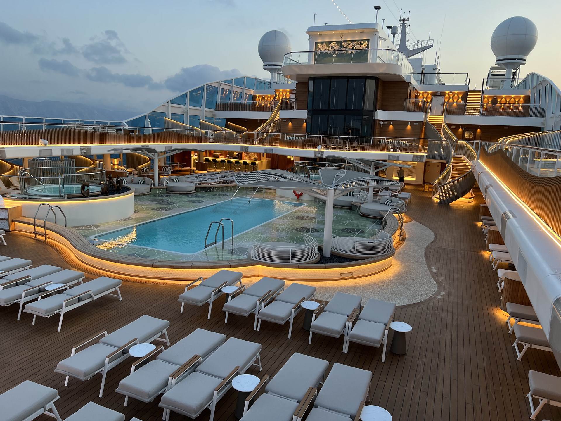 Auf diesem Deck befindet sich der allgemein zugängliche Poolbereich. Dieser besteht aus einem größeren rechteckigen Pool, sowie mehreren kleineren Whirlpools, Duschen und einem großen Liegebereich mit Sonnenliegen.